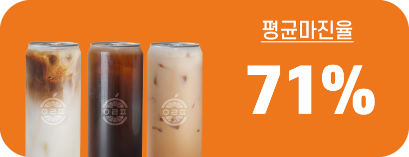 커피,음료메뉴들은 71%이상의 마진율을 자랑합니다.