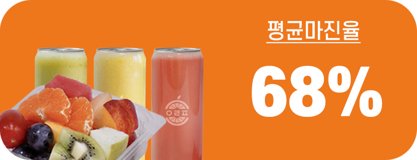 과일에 관련된 메뉴들의 평균마진 68% 이상,